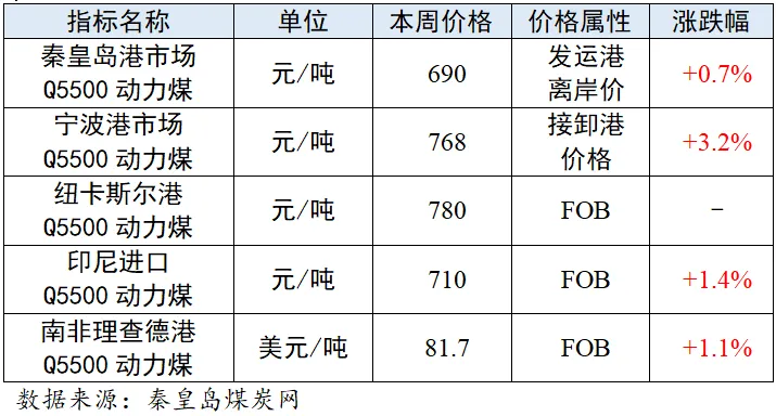 3.煤炭价格(市场以秦皇岛港5500大卡动力煤价格为参考)