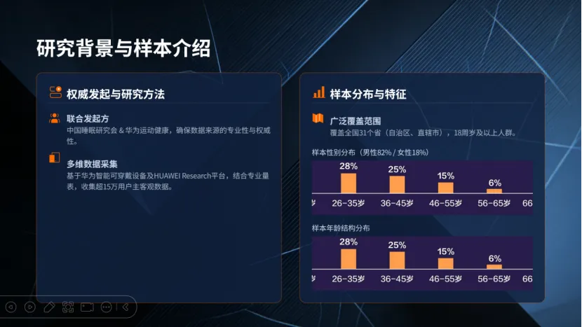 基于华为智能可穿戴设备睡眠监测能力与HUAWEI Research研究平台,在获取用户知情同意与主动参与的前提下,累计招募超15万名18周岁及以上志愿者
