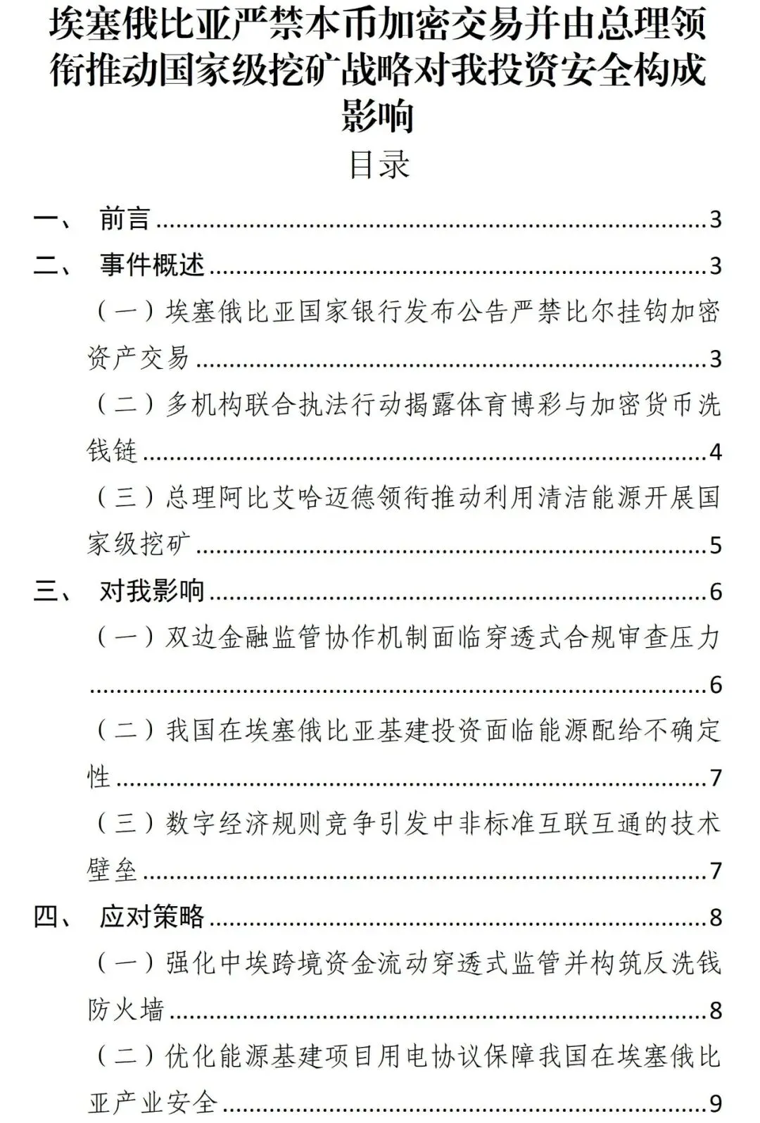 埃塞俄比亚严禁本币加密交易并由总理领衔推动国家级挖矿战略对我投资安全构成影响