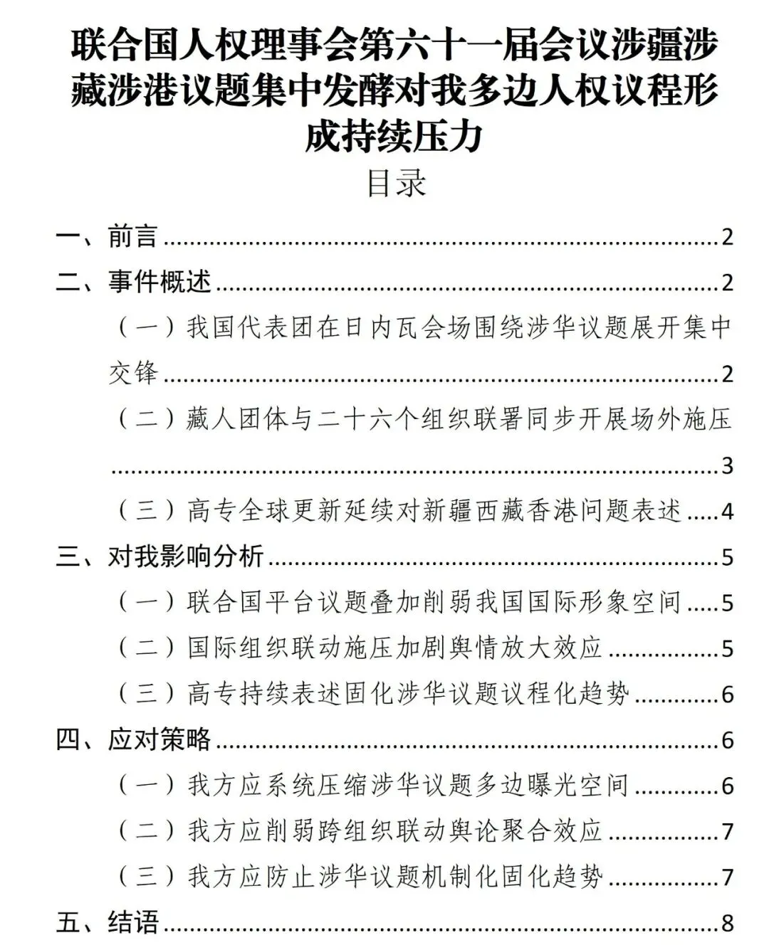 联合国人权理事会第六十一届会议涉疆涉藏涉港议题集中发酵对我多边人权议程形成持续压力
