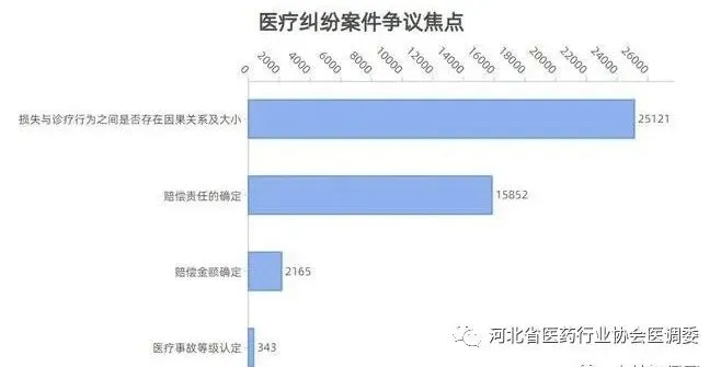 通过统计医疗损害赔偿责任纠纷、医疗保险待遇纠纷等案由的争议焦点发现,医疗纠纷相关案件的争议焦点集中在以下几点: