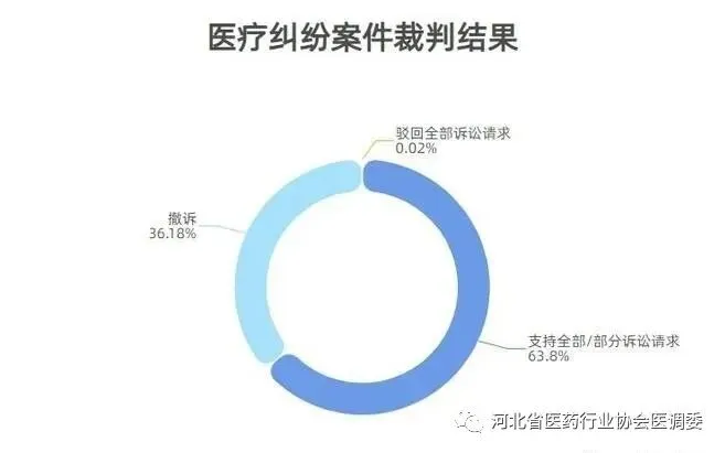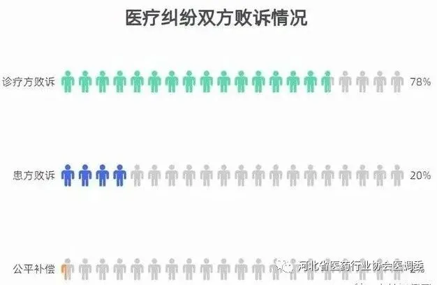 统计医疗纠纷双方的败诉情况发现,诊疗方败诉的比例高达78%,患方败诉的案件占据20%,而法院判决诊疗方承担公平补偿责任的占据2%。