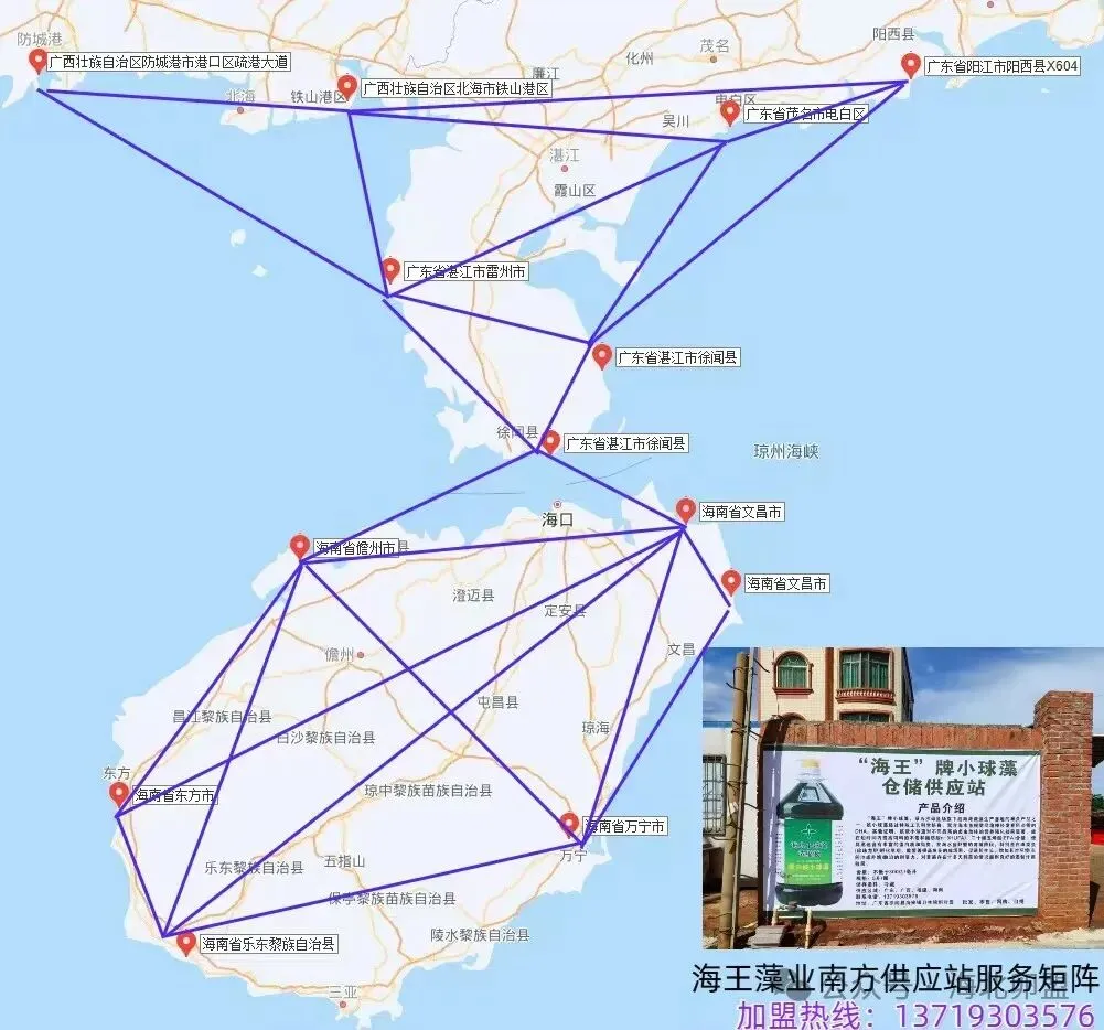 古有“河西走廊”,今有“沿海藻廊”,“海王”牌小球藻正在打造南方供应站服务矩阵,全方位做好微藻配送的最后一公里服务!