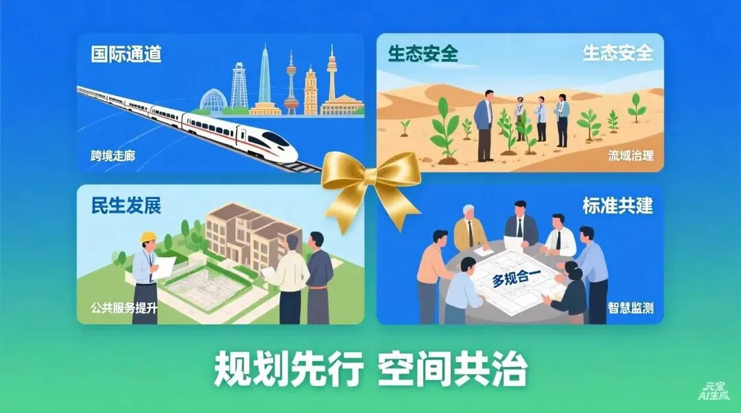 1.服务国际通道与节点:支撑跨境走廊、枢纽城市、产业园区,以空间协同筑牢和平繁荣带。