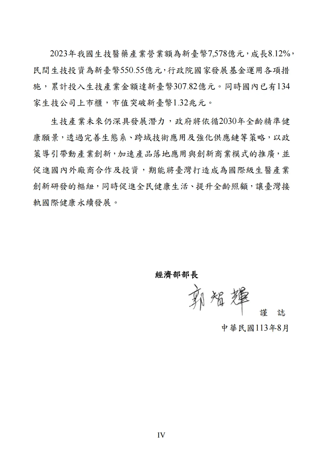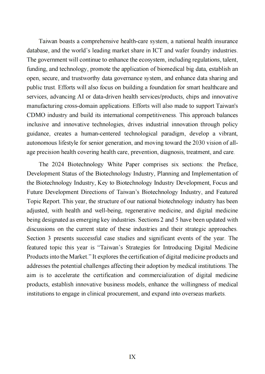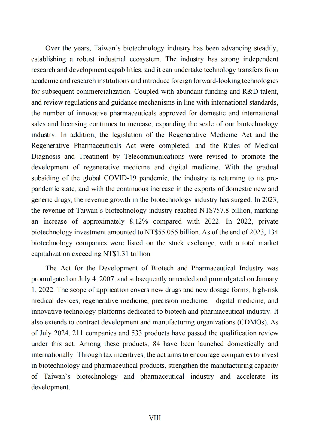 我國生技產業推動多年,已建構完備的產業生態系,產業也具備自主研發能量,可承接學研機構技術移轉或國外前瞻技術之引進,從事後續商業化推動,加上充沛的資金及研發人才,與國際接軌的審查法規與輔導機制,使創新醫藥品在國內外獲准上市銷售與對外授權案件數持續增加,擴大我國生技產業規模。