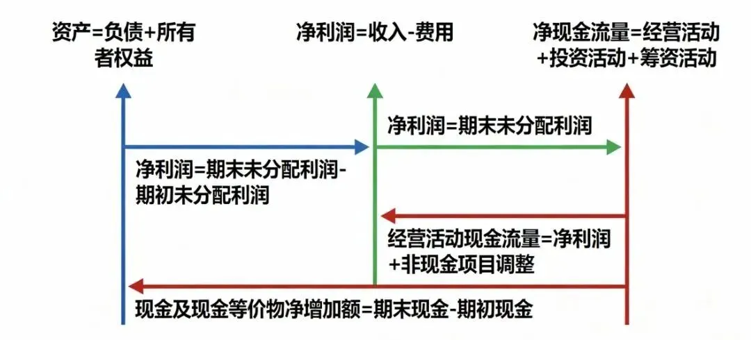 问题的核心,就是没搞懂资产负债表、利润表、现金流量表的勾稽关系。这层关系是财报的底层逻辑,也是验证数据真假、看透企业真实经营的唯一关键。
