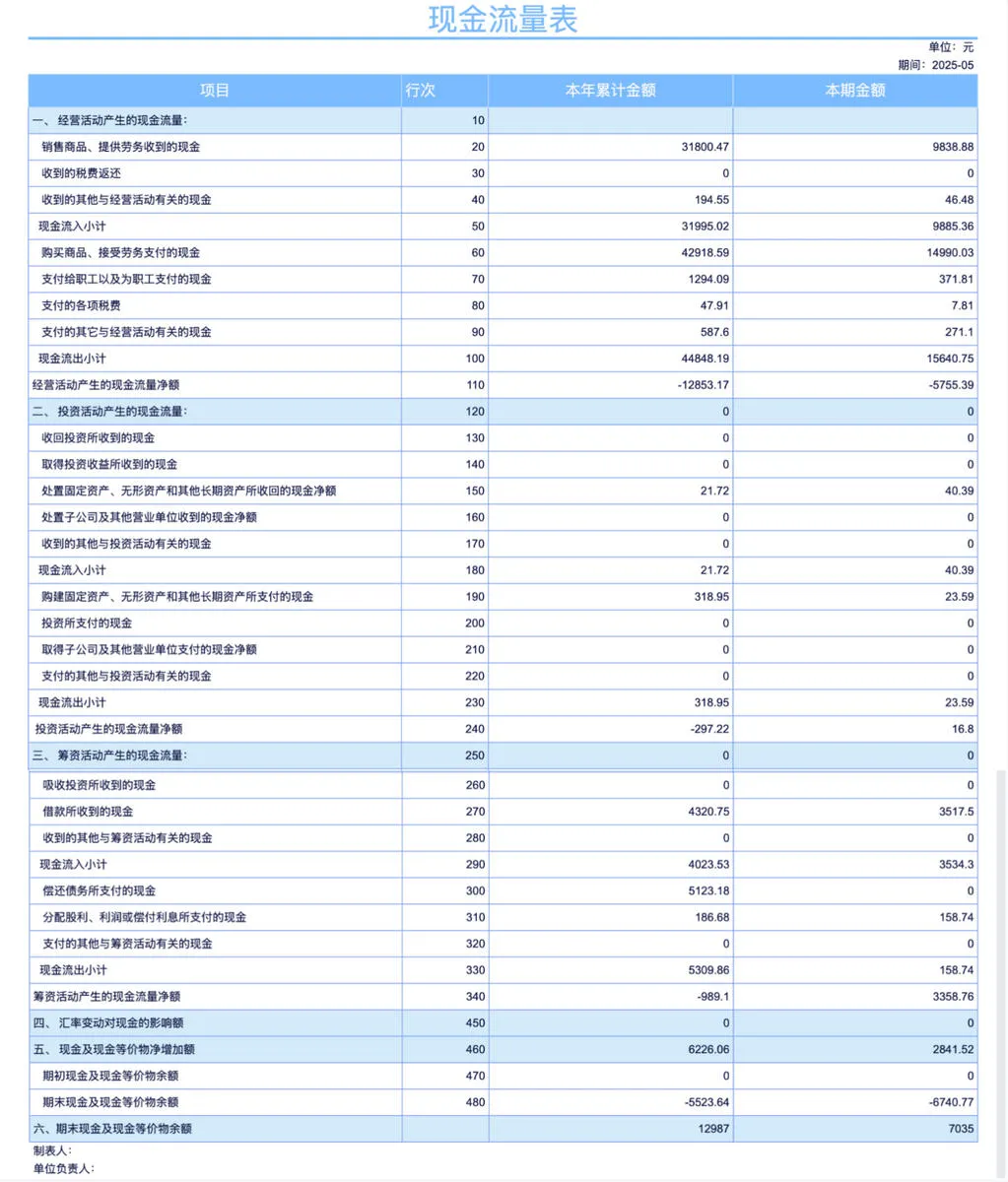 记录企业某一段时间内实际的现金进进出出,属于流量数据,按「收付实现制」算 —— 只认真金白银,不认账面账。这是检验利润真实性的核心,账面利润再高,没现金都是白搭。