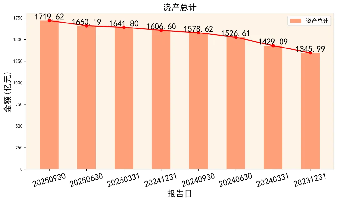利润高了,成本结构变了吗?我们把营业总成本拆开看。2025年前三季度,营业成本为 686.91亿元,占总收入的比例为 82.01%,较去年同期略有下降,这是毛利率提升的主因。但需要警惕的是,三项费用(销售、管理、研发) 合计 33.01亿元,同比增长了 20.3%,增速接近收入增速。其中,财务费用高达14.31亿元,同比几乎持平,但绝对值巨大。这说明公司在快速扩张中,背负了不小的利息包袱。此外,利润表中有一个刺眼的数字:公允价值变动收益为-8.62亿元。这主要是公司持有的黄金租赁、衍生金融工具等随金价波动产生的账面亏损。虽然这只是会计记账,不影响现金流,但它提示了公司业务与金价深度捆绑所带来的业绩波动风险。03 资产家底:扩张迅猛的“重”资产模式