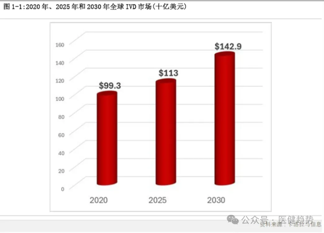 如图所示,2025年全球体外诊断市场规模为1130亿美元: