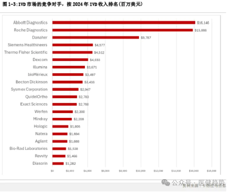 产品和地理上的巨大规模和广度使得IVD巨头如雅培、罗氏和丹纳赫为IVD全球市场的整体增长做出了贡献。第2章更详细地描述了市场中的竞争活动。