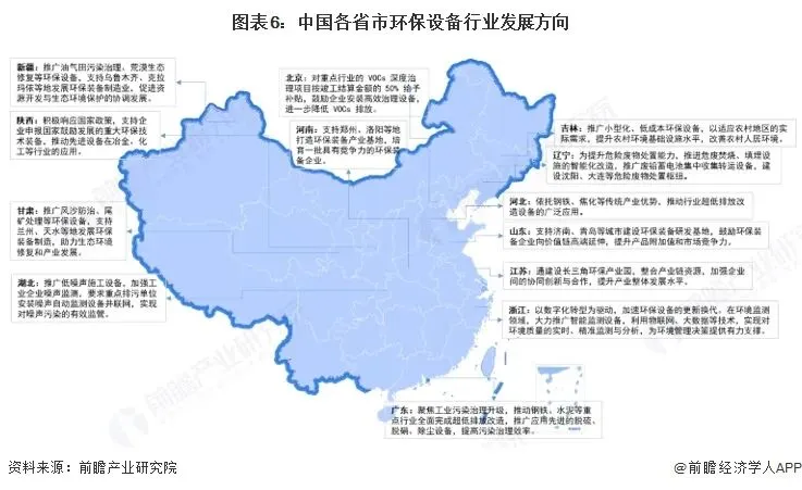 从全国各省市的环保设备行业发展布局来看,各省市积极响应,围绕环保设备行业制定了一系列契合自身发展需求的目标,旨在提升环境质量、促进资源循环利用以及推动产业升级。不同省市的产业发展基础不同,生态环境不同,因此各省市根据自身产业基础和资源特点发展环保设备,例如北京市为改善大气环境,重点推进VOCs深度治理,补贴相关项目并严格油气排放监管;湖北省针对噪声污染,推广低噪声施工设备,加强工业企业噪声监测;辽宁省为提升危险废物处置能力,推进危废焚烧、填埋设施智能化改造 。