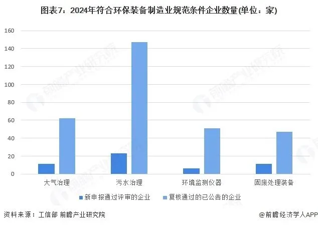 按照《环保装备制造行业(大气治理)规范条件》《环保装备制造行业(污水治理)规范条件》《环保装备制造行业(环境监测仪器)规范条件》《环保装备制造行业(固废处理装备)规范条件》等4个细分领域规范条件要求,经地方工业和信息化主管部门核实推荐、专家组评审、网上公示等程序,将《符合环保装备制造业规范条件企业名单(2024年版)》予以公告(含新申报通过评审企业及通过复核的已公告企业)。其中新申报通过评审的大气治理企业11家、污水治理企业23家、环境监测仪器企业6家、固废处理装备企业11家;复核通过的已公告的企业中,大气治理企业62家、污水治理企业147家、环境监测仪器企业51家、固废处理装备企业47家。