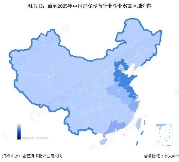 根据中国企业数据库企查猫,目前中国环保设备注册企业主要集中在山东省、江苏省和河北省,此外广东省、浙江省等也具有不少布局环保设备业务相关的企业。