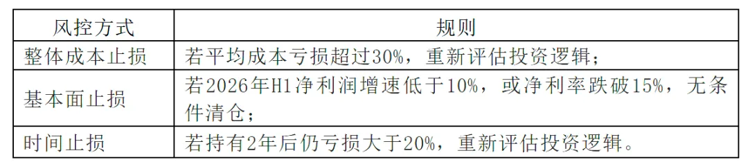 监控频率:2025年报披露后1周内更新2025年真实业绩数据,修正2026-2027年盈利预测;每半年度完成一次估值模型更新和投资策略的调整,不定期从官网、官方公众号、网络和实地调研收集相关信息。