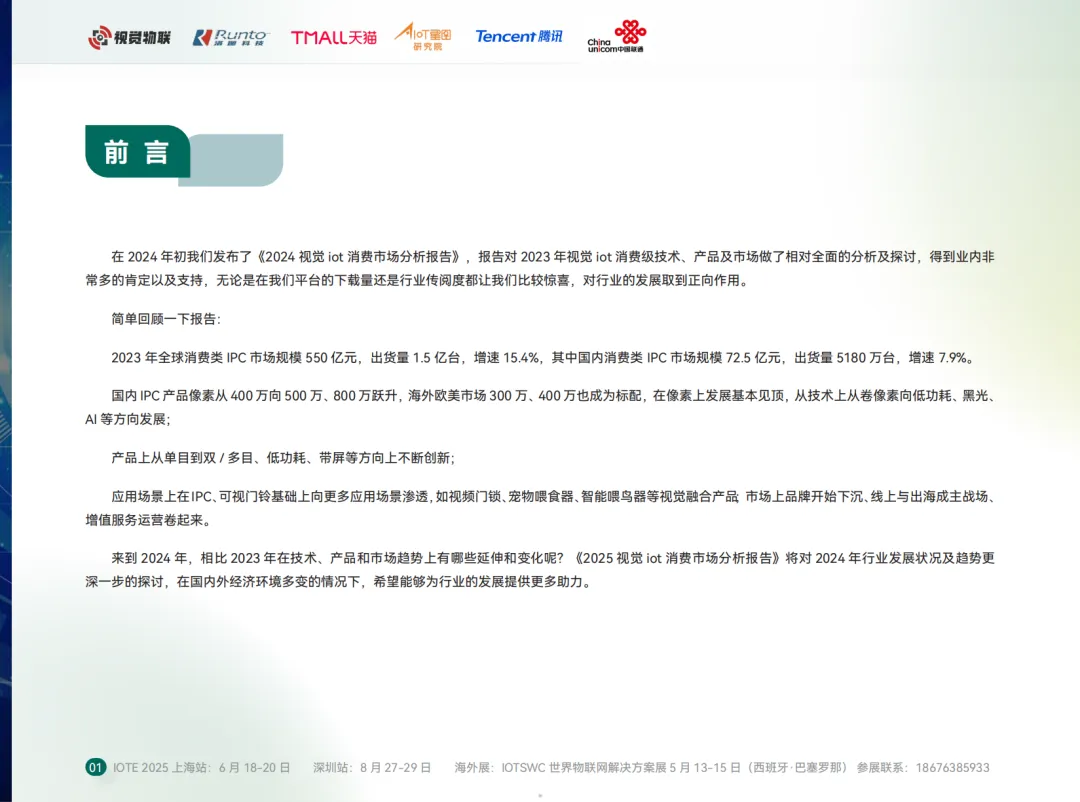 关注公众号,然后在首页对话框回复关键词“2025视觉IoT消费市场报告”,