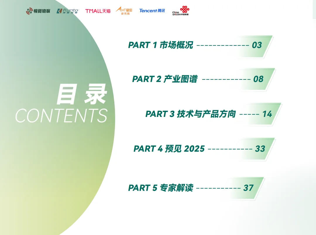 这份《2025视觉IoT消费市场分析报告》由视觉物联、AIoT星图研究院联合发布,涵盖了市场概况、产业链生态、技术与产品趋势、2025年市场预测及专家观点等内容。以下是报告的核心内容提炼:
