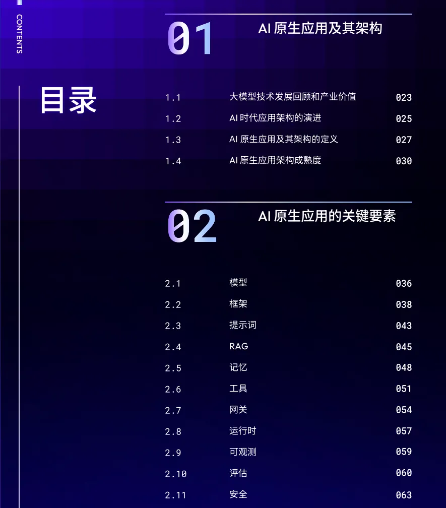 从大模型技术发展的回顾开始,正因为其技术上的突破,带来了应用上的繁荣,并对应用架构的演进历程进行了梳理,对AI原生应用需要具备的核心能力给出了解释,以及定义了AI原生应用架构成熟度,作为企业综合衡量AI原生应用在技术实现、业务融合与安全可信等方面所达到的水平的一个参考标准。