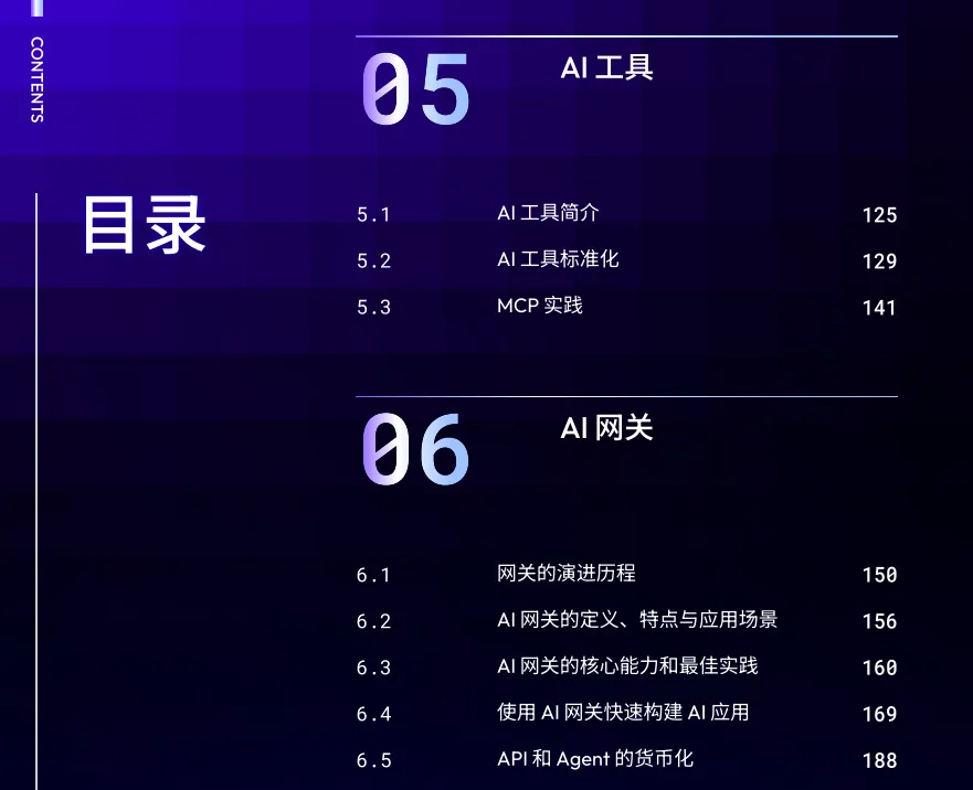AI网关是大模型最重要的集成能力之一。本章完整地介绍了网关的演进历程,并解释了为什么AI原生应用架构中,网关的地位如此重要。随后,介绍了基于AI网关来构建一个AI应用的实践,以及探讨了API和Agent货币化所需要的基础设施建设。