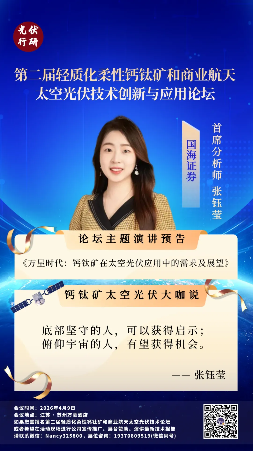 【演讲嘉宾】国海证券 张钰莹:万星时代——钙钛矿在太空光伏应用中的需求及展望
