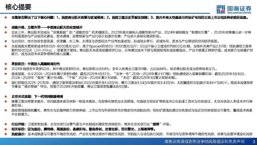 2、柔性钙钛矿电池组件&商业航天设备上中下游产业链汇聚,共同向太空光伏建设迈进;