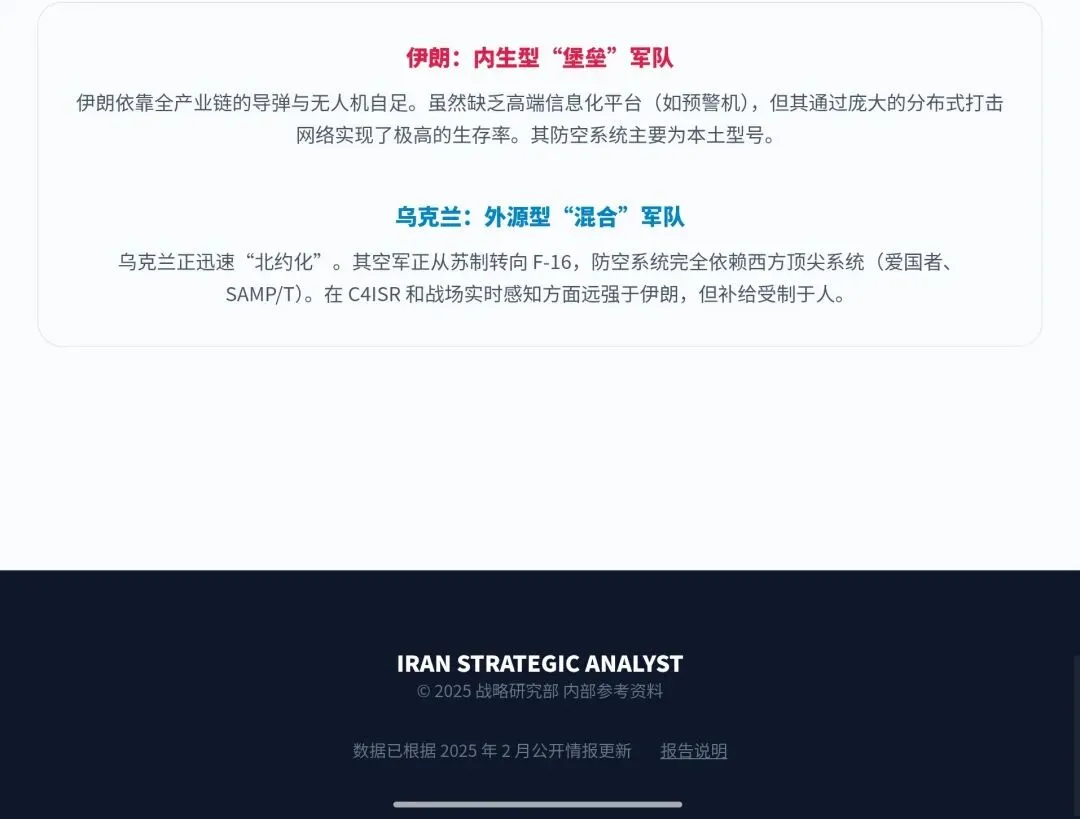乌克兰战争证明了信息化、星链支持以及西方精准武器的力量。而伊朗模式则证明:在一个没有卫星制导优势、没有外部情报持续供应的情况下,如何通过大规模分布式发射、地下长城以及冗余的非对称手段,维持同级别的战略威慑。