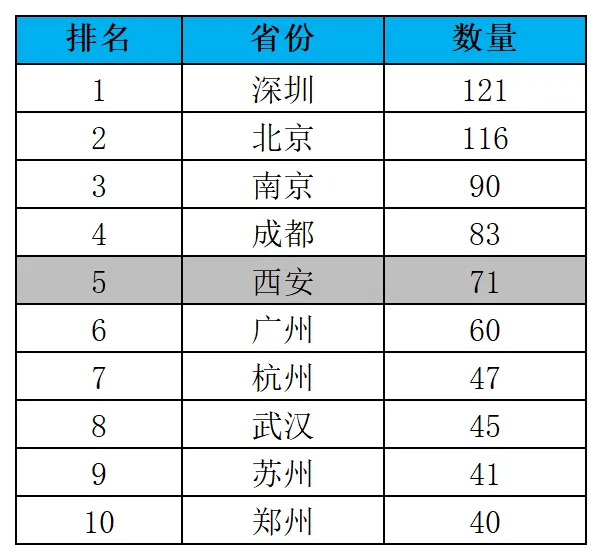表5:各城市无人机产品数量TOP10