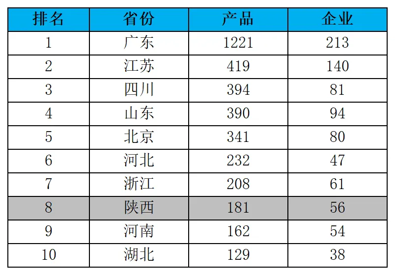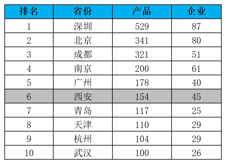 表4:各省无人机产品数量TOP10