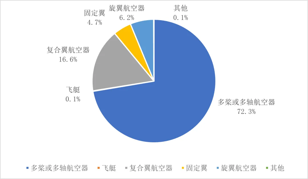 4665款各型无人机中,多桨或多轴航空器占绝对主流,达到3375款,其次是774款的复合翼航空器、287款的旋翼航空器、221款的固定翼和5飞艇,以及其他3款未标明产品类型。