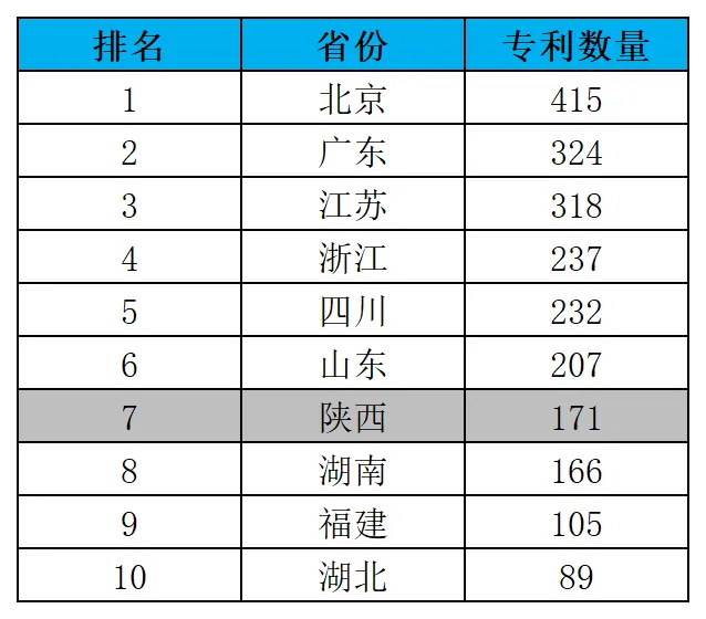 表9:近一年各省无人机发明专利TOP10