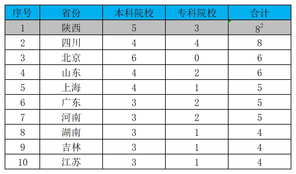 表13:全国各省份开设航空航天相关专业院校数量TOP10