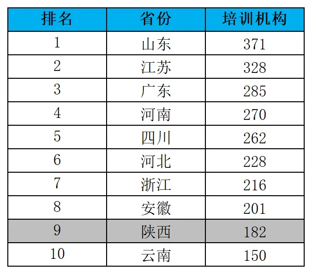 表14:各省无人机培训机构TOP10