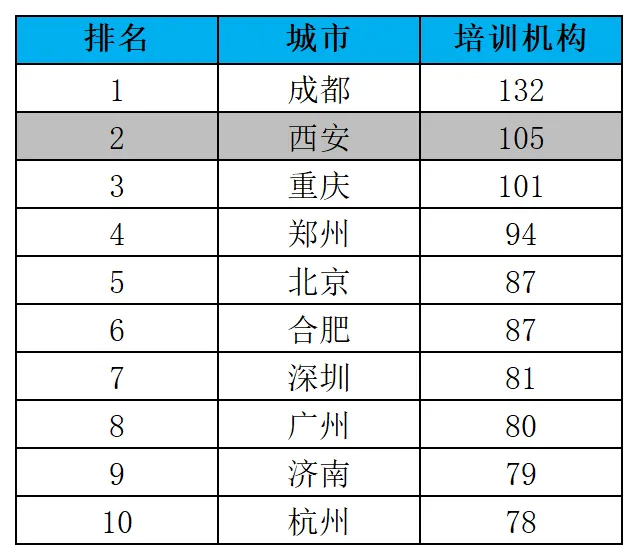 表15:各城市无人机培训机构TOP10