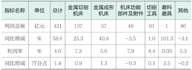 2025年,机床工具行业实现利润总额421亿元,同比增长58.6%。平均利润率为4.0%,同比提高1.4个百分点。