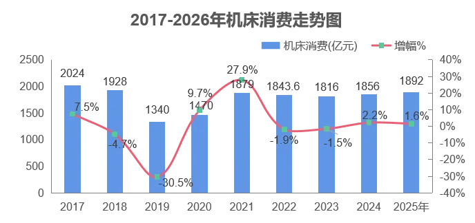 根据中国机床工具工业协会(CMTBA)《2025年度机床工具行业经济运行报告》,2025年,机床工具行业完成营业收入10571亿元,同比增长1.6%。