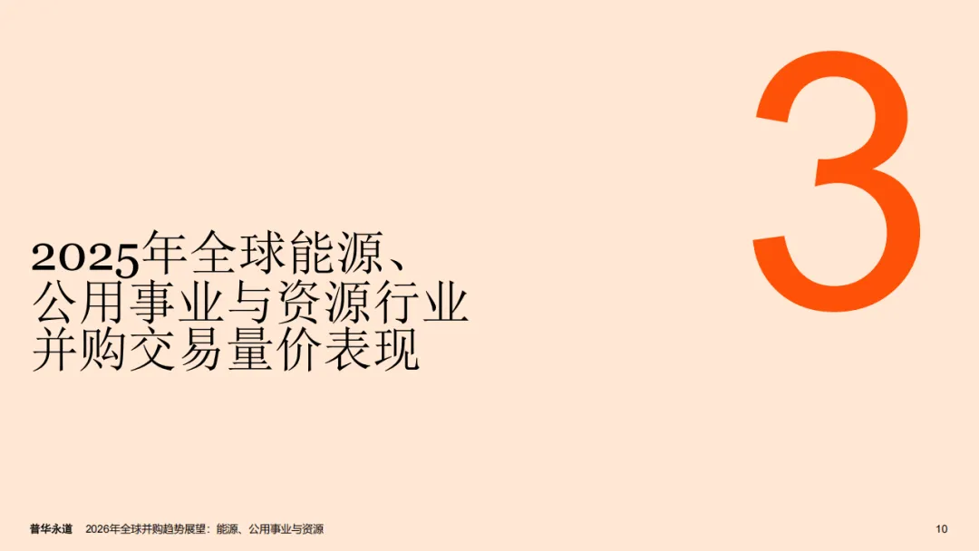 普华永道2026年全球并购趋势展望报告指出,人工智能与数据中心基础设施扩张引发的能源需求结构性跃升,成为重塑能源、公用事业与资源行业全球并购格局的核心因素,规模、速度与韧性成为2026年行业并购的关键关键词,此次行业并购的变化并非周期性波动,而是能源及基础设施资产在估值、融资与交易方式上的结构性重置。