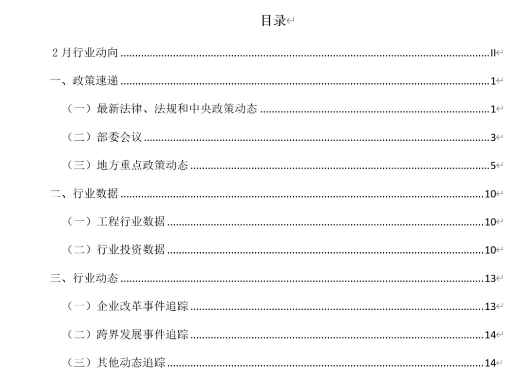 《科思顿工程行业月度观察(2026年2月)》目录如下: