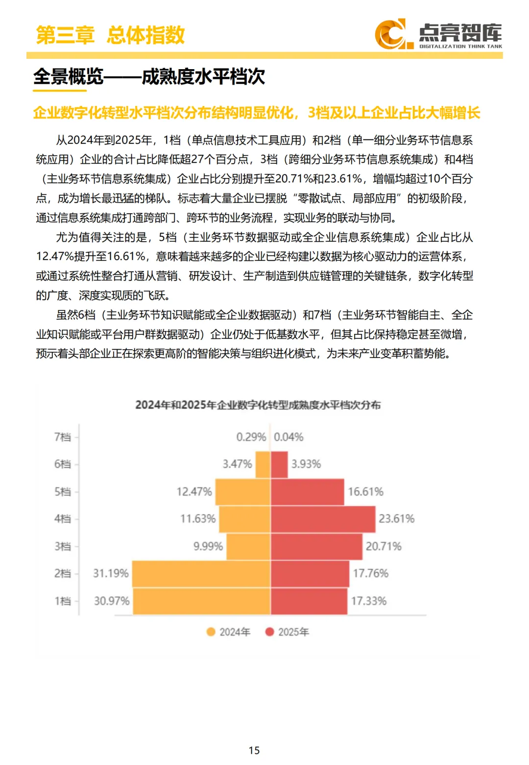 2025年是“十四五”收官与“十五五”启航的关键节点。在这一历史交汇期,点亮智库&中信联联合发布的《2025企业数字化转型指数报告》(以下简称《报告》)基于10万余家企业样本,首次系统性地描绘了中国企业数字化转型的“全景图”。《报告》不仅揭示了企业在技术、战略、业务、管理、能力等方面的系统性变革进程,更标志着中国企业数字化转型已从“基础建设期”迈入“全面深化期”。