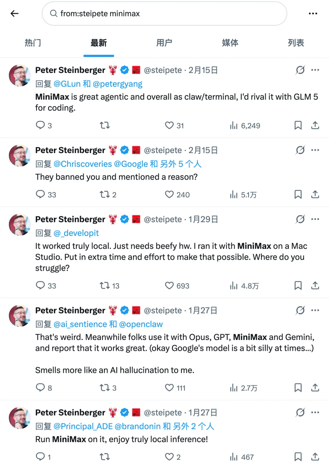 MiniMax 今年 1 月 9 号上市,年后发布了上市后的首份年报。2025年营收同比增速 159%,毛利率改善,从 12% 提升到 25%,得益于推理成本的持续下降;销售费用同比减少 40%,产品主要靠自然增长和口碑传播;研发费用同比 34%,研发费用是营收的三倍多,新模型的训练停不下来。目前 MiniMax 覆盖文字、视频图像、语音音乐的多模态模型,值得一提的是,OpenClaw 创始人 Peter 对 MiniMax 的能力也很认可。净利润 -19 亿美元,看起来有点吓人,实际上只是一次性的。因为上市前的投资人持有的都是可转换可赎回的优先股,算作公司的金融负债。随着公司估值提升,会导致「金融负债公允价值亏损」这一项急剧增大。上市后优先股会转成普通股,负债变权益,就没有这项亏损了。如果把这项加回去,计算经调整净亏损是 2 亿,和去年差不多。还有两点要注意,目前其他收入要超过毛利,主要是理财和汇兑的收益;员工薪酬开支也超过了总营收。截至 2025 年底,MiniMax 累计服务超过 200 个国家及地区的 2.36 亿名用户,以及来自超过 100 个国家及地区的 21.4 万企业客户以及开发者。