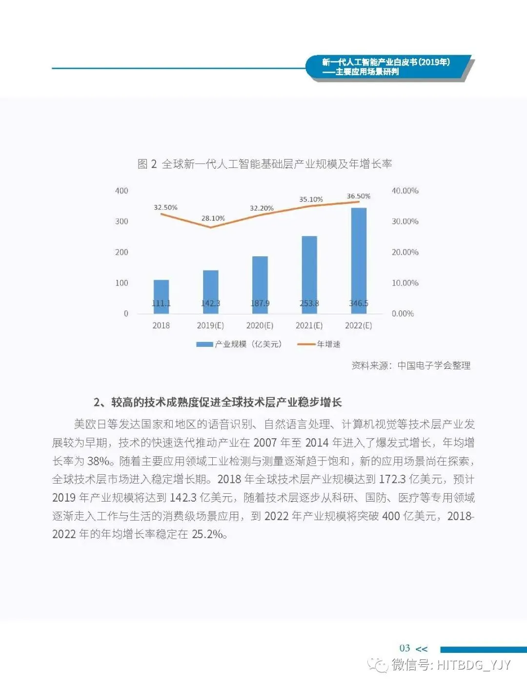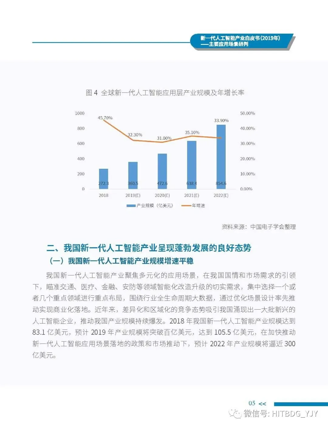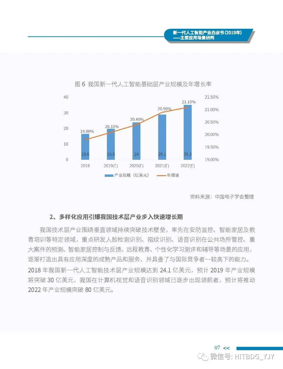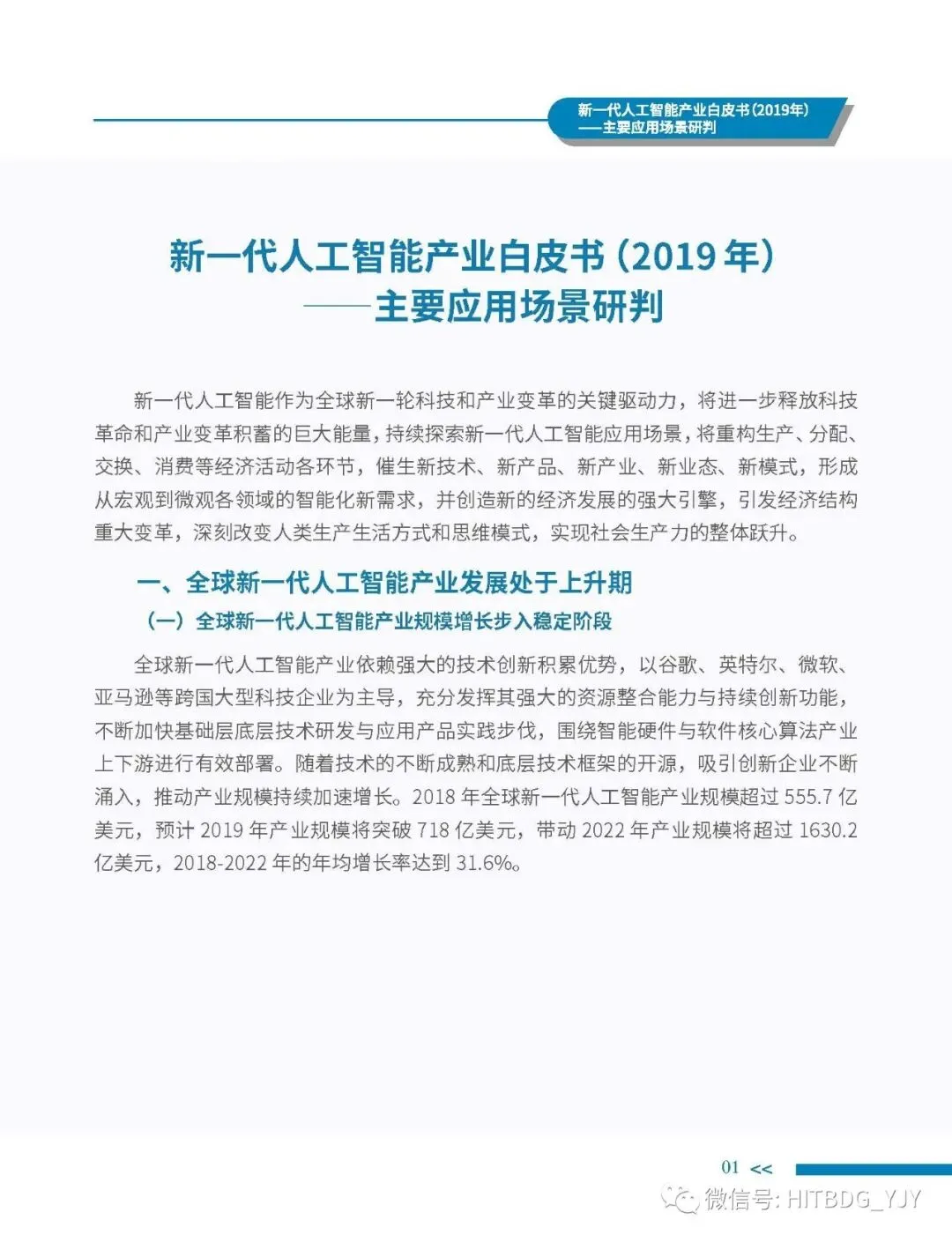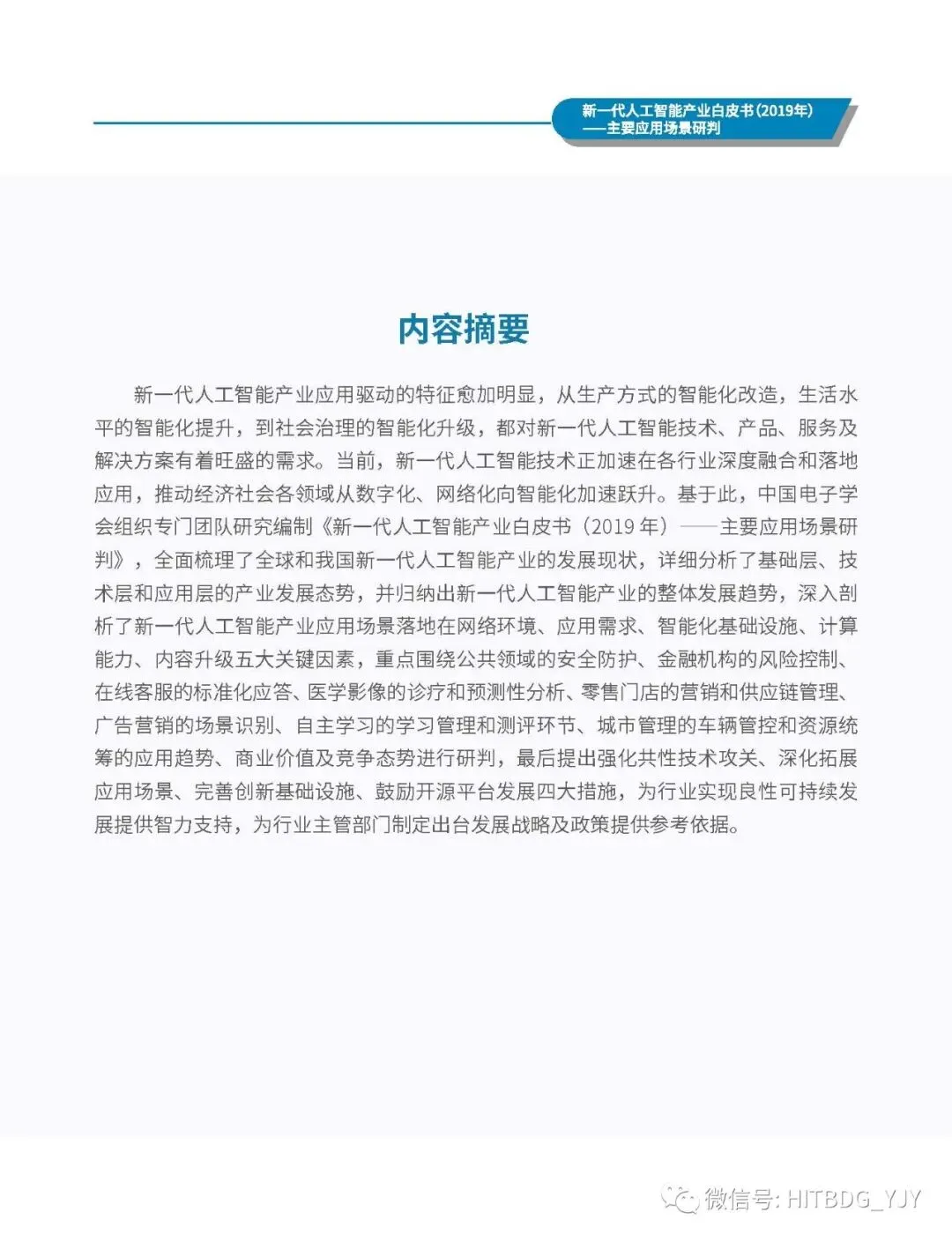 新一代人工智能产业应用驱动的特征愈加明显,从生产方式的智能化改造,生活水平的智能化提升,到社会治理的智能化升级,都对新一代人工智能技术、产品、服务及解决方案有着旺盛的需求。当前,新一代人工智能技术正加速在各行业深度融合和落地应用,推动经济社会各领域从数字化、网络化向智能化加速跃升。基于此,中国电子学会组织专门团队研究编制《新一代人工智能产业白皮书(2019 年)——主要应用场景判》,全面梳理了全球和我国新一代人工智能产业的发展现状,详细分析了基础层、技术层和应用层的产业发展态势,并归纳出新一代人工智能产业的整体发展趋势,深入剖析了新一代人工智能产业应用场景落地在网络环境、应用需求、智能化基础设施、计算能力、内容升级五大关键因素,重点围绕公共领域的安全防护、金融机构的风险控制、在线客服的标准化应答、医学影像的诊疗和预测性分析、零售门店的营销和供应链管理、广告营销的场景识别、自主学习的学习管理和测评环节、城市管理的车辆管控和资源统筹的应用趋势、商业价值及竞争态势进行研判,最后提出强化共性技术攻关、深化拓展应用场景、完善创新基础设施、鼓励开源平台发展四大措施,为行业实现良性可持续发展提供智力支持,为行业主管部门制定出台发展战略及政策提供参考依据。