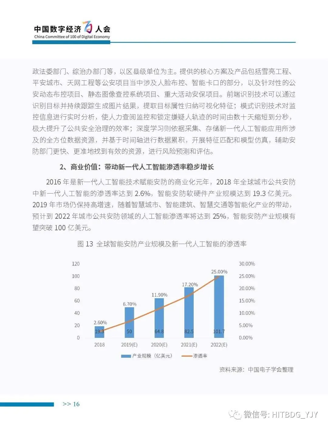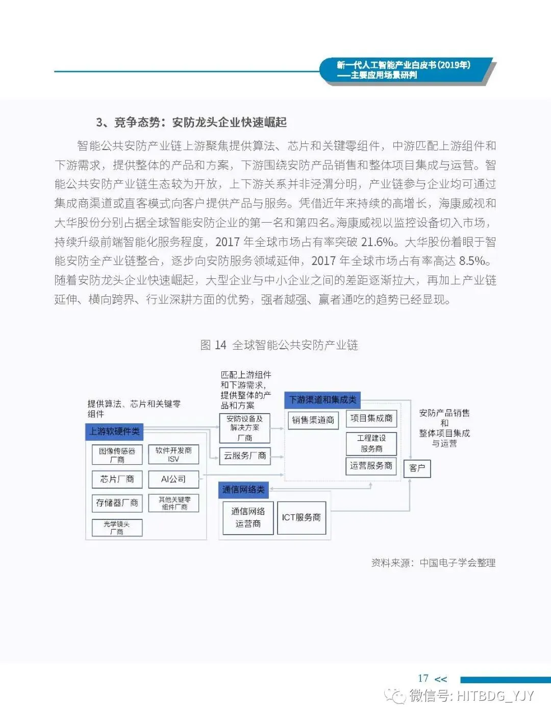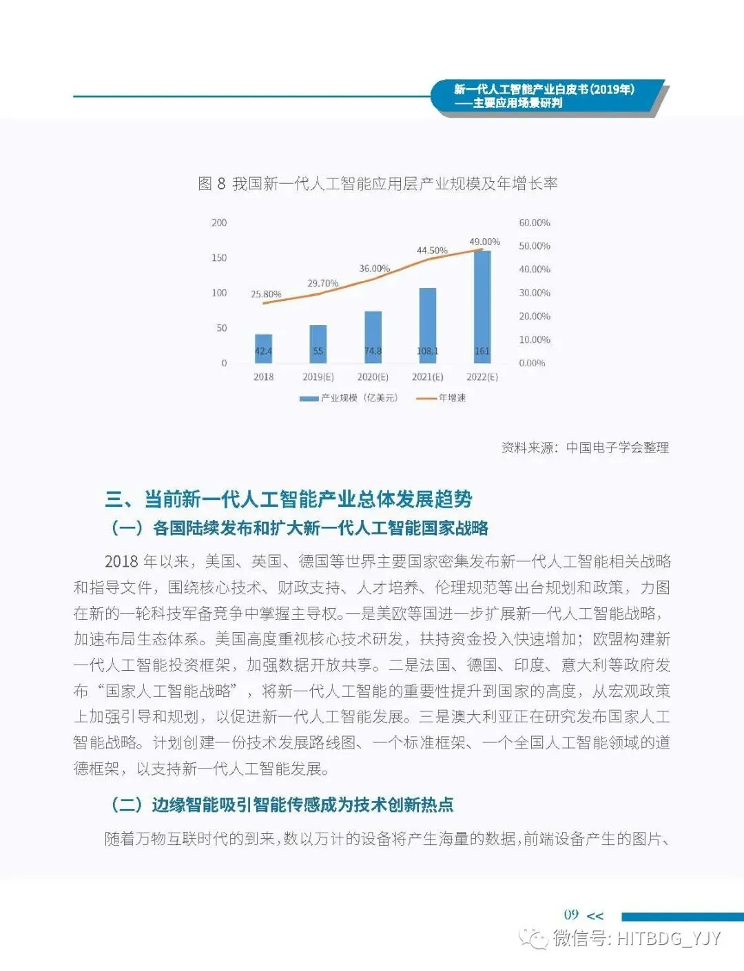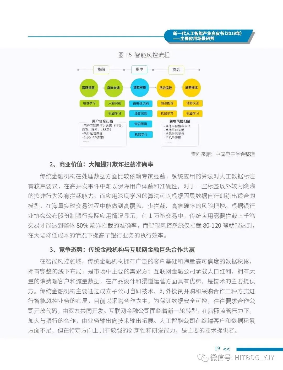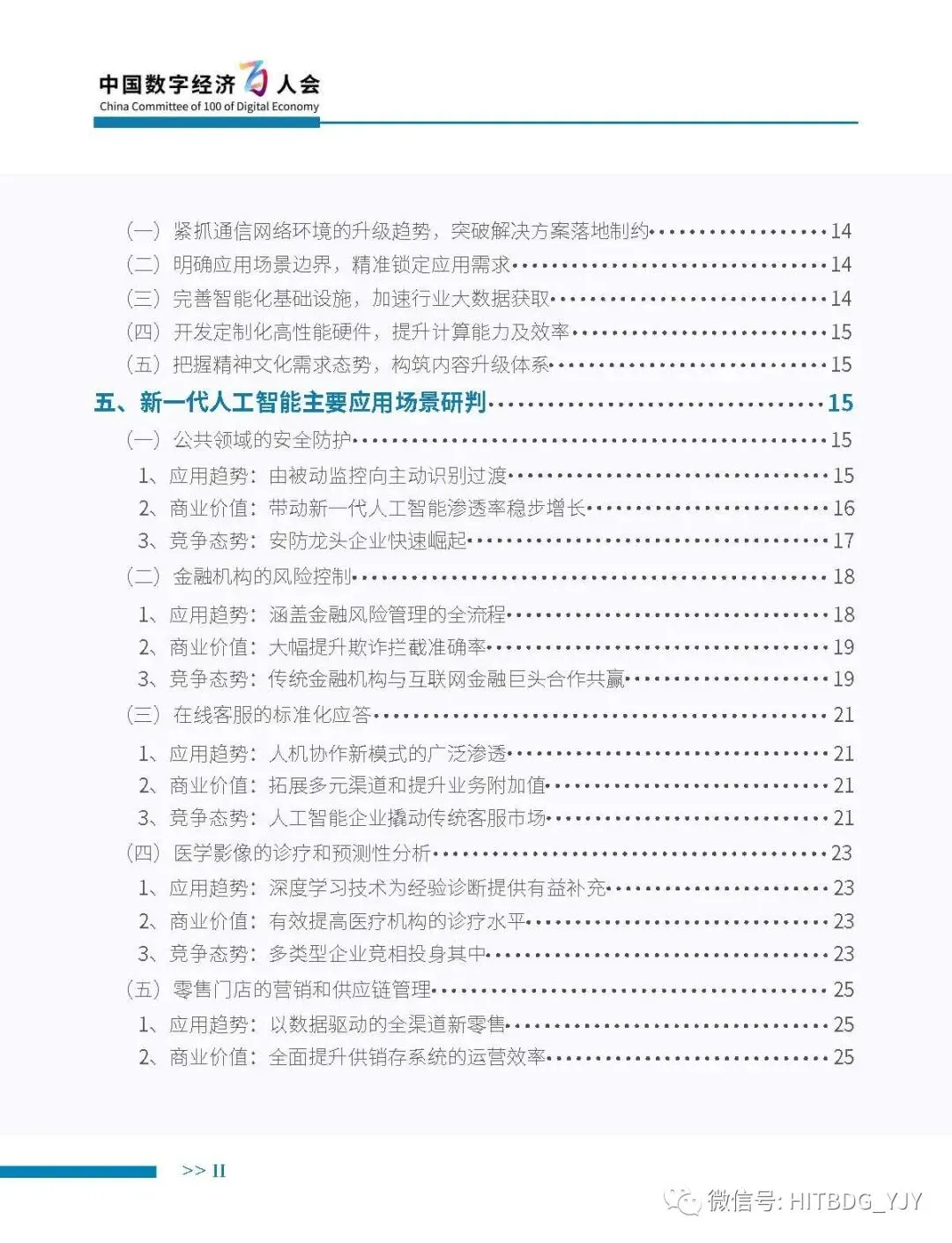 新一代人工智能产业应用驱动的特征愈加明显,从生产方式的智能化改造,生活水平的智能化提升,到社会治理的智能化升级,都对新一代人工智能技术、产品、服务及解决方案有着旺盛的需求。当前,新一代人工智能技术正加速在各行业深度融合和落地应用,推动经济社会各领域从数字化、网络化向智能化加速跃升。基于此,中国电子学会组织专门团队研究编制《新一代人工智能产业白皮书(2019 年)——主要应用场景判》,全面梳理了全球和我国新一代人工智能产业的发展现状,详细分析了基础层、技术层和应用层的产业发展态势,并归纳出新一代人工智能产业的整体发展趋势,深入剖析了新一代人工智能产业应用场景落地在网络环境、应用需求、智能化基础设施、计算能力、内容升级五大关键因素,重点围绕公共领域的安全防护、金融机构的风险控制、在线客服的标准化应答、医学影像的诊疗和预测性分析、零售门店的营销和供应链管理、广告营销的场景识别、自主学习的学习管理和测评环节、城市管理的车辆管控和资源统筹的应用趋势、商业价值及竞争态势进行研判,最后提出强化共性技术攻关、深化拓展应用场景、完善创新基础设施、鼓励开源平台发展四大措施,为行业实现良性可持续发展提供智力支持,为行业主管部门制定出台发展战略及政策提供参考依据。