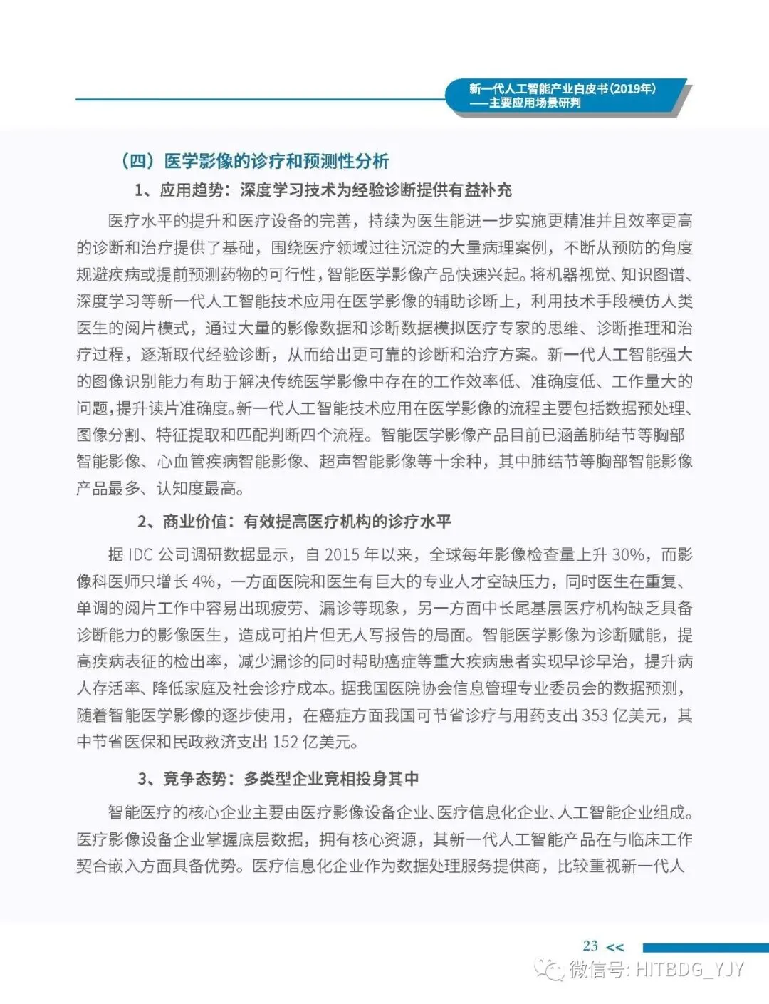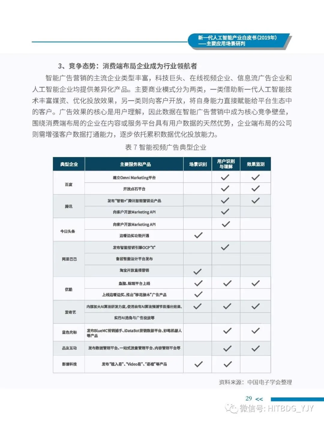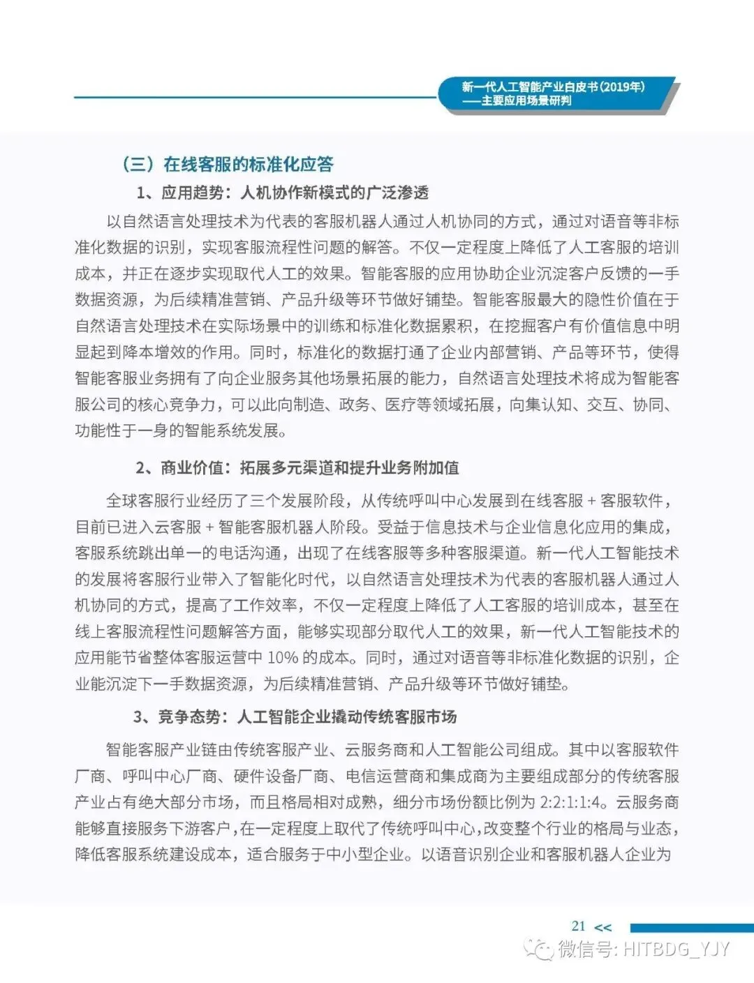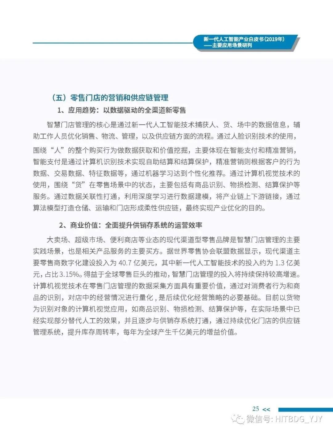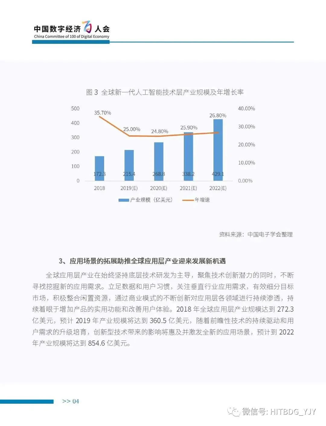 新一代人工智能产业应用驱动的特征愈加明显,从生产方式的智能化改造,生活水平的智能化提升,到社会治理的智能化升级,都对新一代人工智能技术、产品、服务及解决方案有着旺盛的需求。当前,新一代人工智能技术正加速在各行业深度融合和落地应用,推动经济社会各领域从数字化、网络化向智能化加速跃升。基于此,中国电子学会组织专门团队研究编制《新一代人工智能产业白皮书(2019 年)——主要应用场景判》,全面梳理了全球和我国新一代人工智能产业的发展现状,详细分析了基础层、技术层和应用层的产业发展态势,并归纳出新一代人工智能产业的整体发展趋势,深入剖析了新一代人工智能产业应用场景落地在网络环境、应用需求、智能化基础设施、计算能力、内容升级五大关键因素,重点围绕公共领域的安全防护、金融机构的风险控制、在线客服的标准化应答、医学影像的诊疗和预测性分析、零售门店的营销和供应链管理、广告营销的场景识别、自主学习的学习管理和测评环节、城市管理的车辆管控和资源统筹的应用趋势、商业价值及竞争态势进行研判,最后提出强化共性技术攻关、深化拓展应用场景、完善创新基础设施、鼓励开源平台发展四大措施,为行业实现良性可持续发展提供智力支持,为行业主管部门制定出台发展战略及政策提供参考依据。