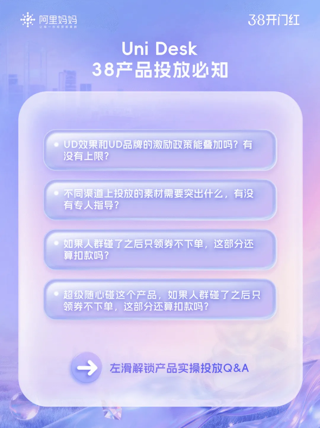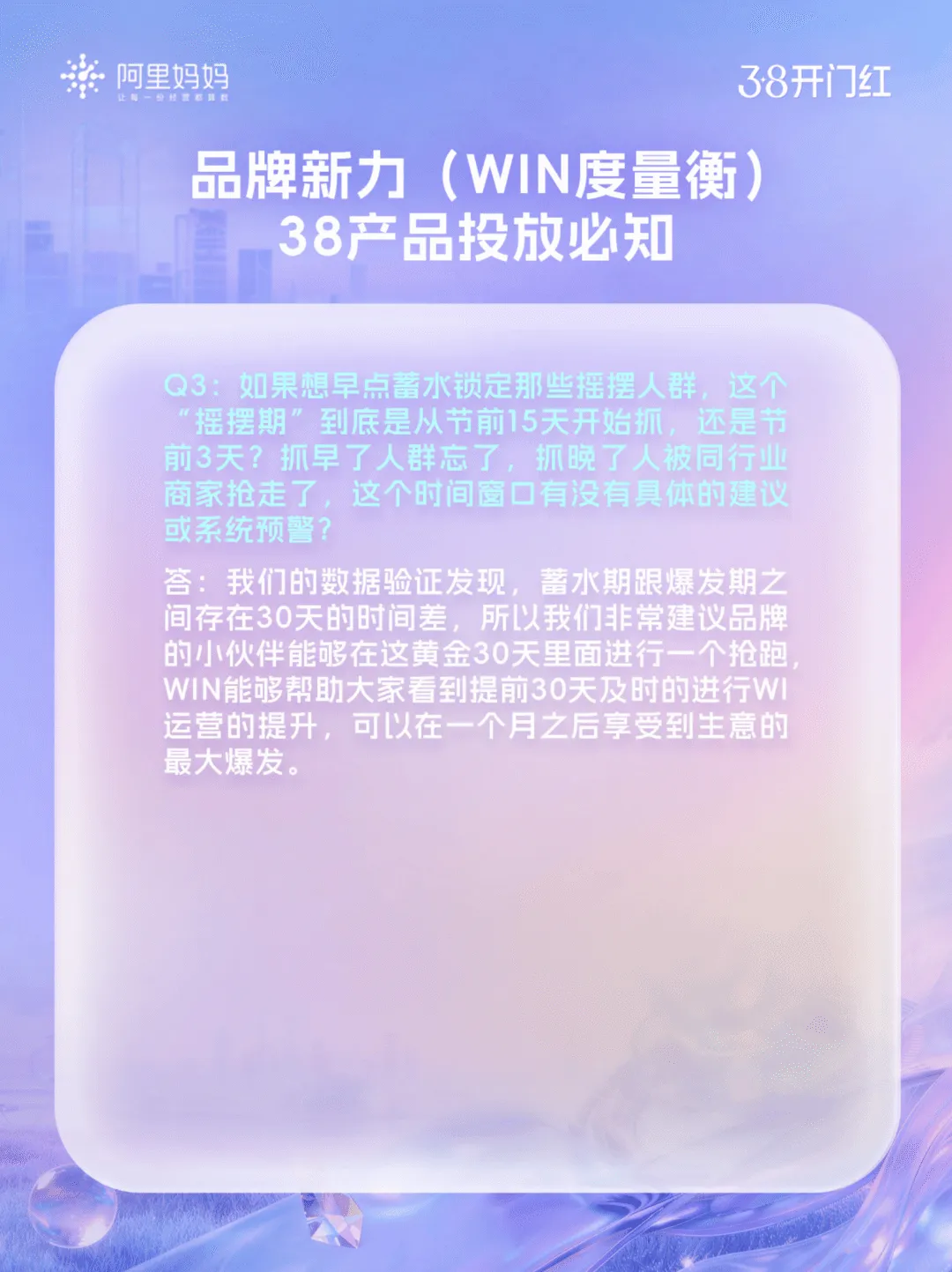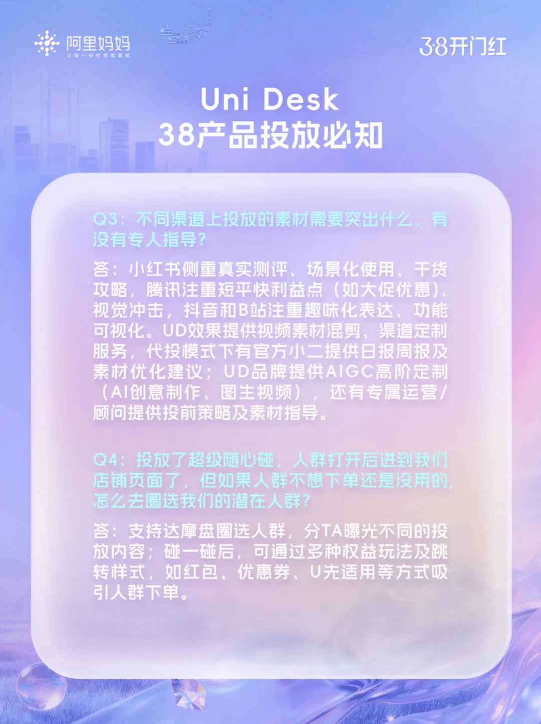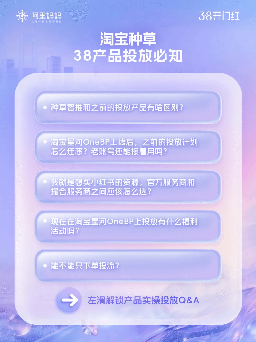 这份阿里妈妈38开门红&焕新周产品实操100问文档,围绕品牌新力WIN度量衡、Uni Desk、淘宝种草、淘内品牌推广等多类投放产品,解答了商家38大促投放的各类实操问题,为不同品类、不同需求的商家提供了全链路的投放策略与操作指引。