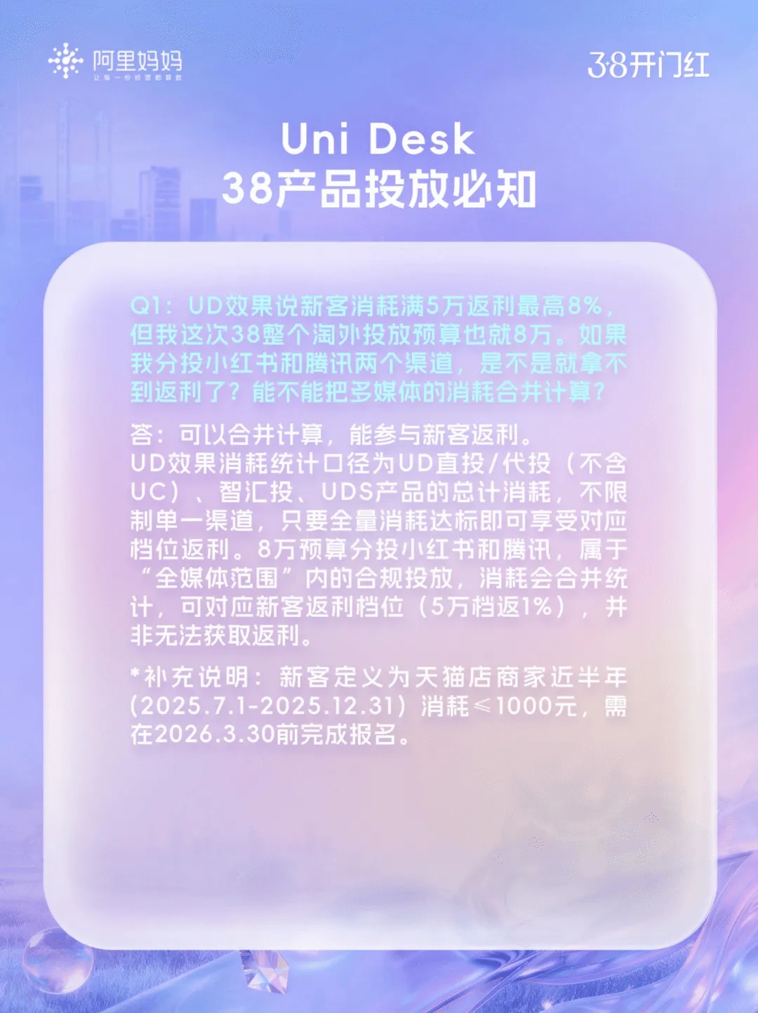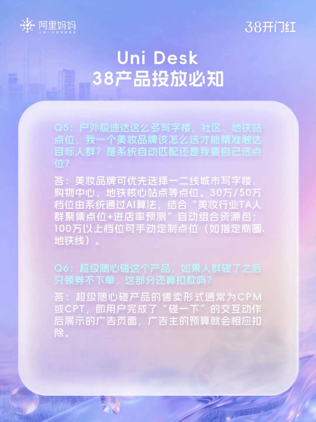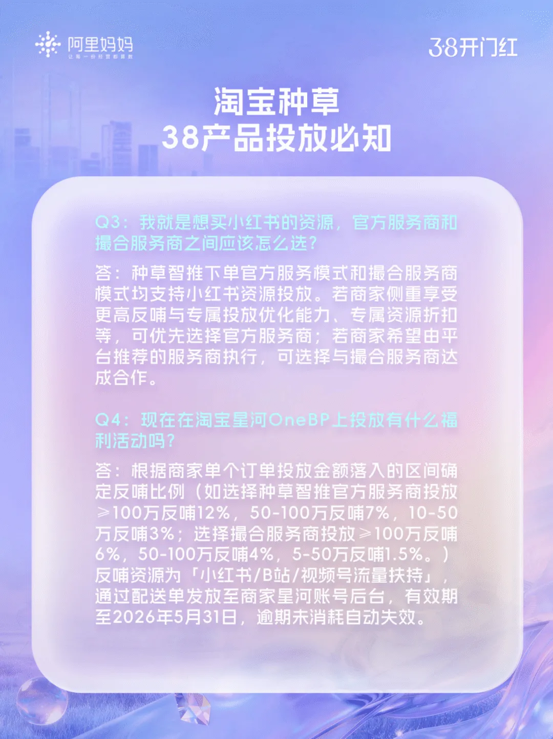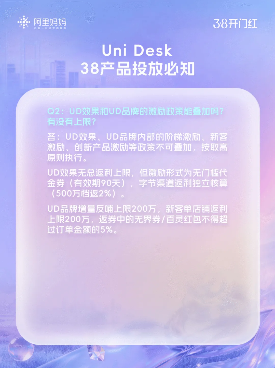 这份阿里妈妈38开门红&焕新周产品实操100问文档,围绕品牌新力WIN度量衡、Uni Desk、淘宝种草、淘内品牌推广等多类投放产品,解答了商家38大促投放的各类实操问题,为不同品类、不同需求的商家提供了全链路的投放策略与操作指引。