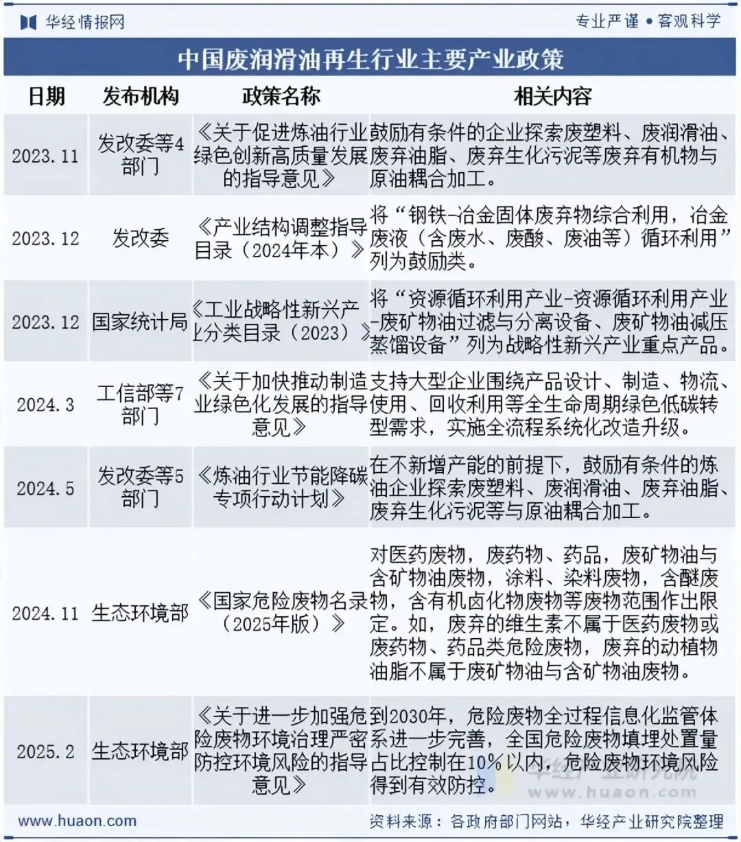 相关报告:华经产业研究院发布的《2026-2032年中国废润滑油再生行业发展运行现状及投资机会洞察报告》