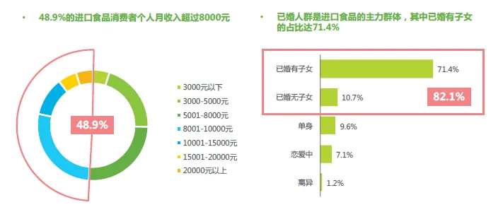 ● 用户特征:购买力强,中产阶级家庭是进口食品消费主力,一二线城市是消费聚集地;