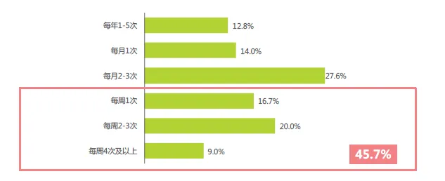 ● 常态化:随着居民生活水平的提升,以及行业不断的发展尤其是供应链的效率升级带来的成本降低和购买便捷度的提升,进口食品开始越来越多地出现在寻常百姓的餐桌。调研数据显示,45.7%的消费者购买进口食品的频次为每周一次及以上;