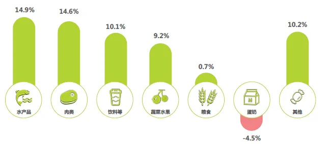● 新鲜化:冷链物流快速发展奠定基础,水产品、肉类等生鲜品类增势迅猛,进口食品鲜不可挡;