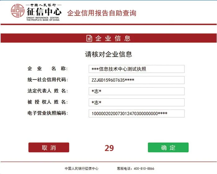第五步,核对企业信息无误后点击“确定”按钮,放置查询人身份证。