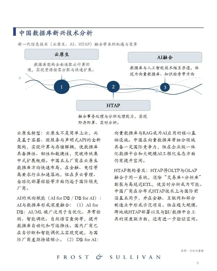 其一,政策与技术双轮驱动格局成型:以“2+8+N”为路径的信创工程,为国产数据库提供了宝贵的规模化验证场景;同时,云原生、AI融合(AI for DB/DB for AI)与HTAP架构等技术创新,正推动数据库从“支撑型系统”向“智能化数据底座”转型。