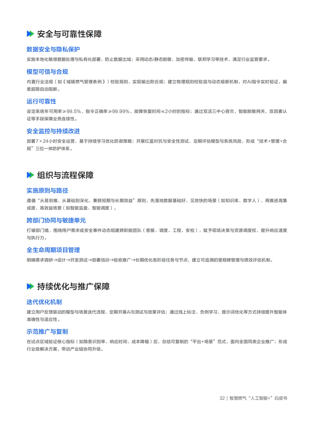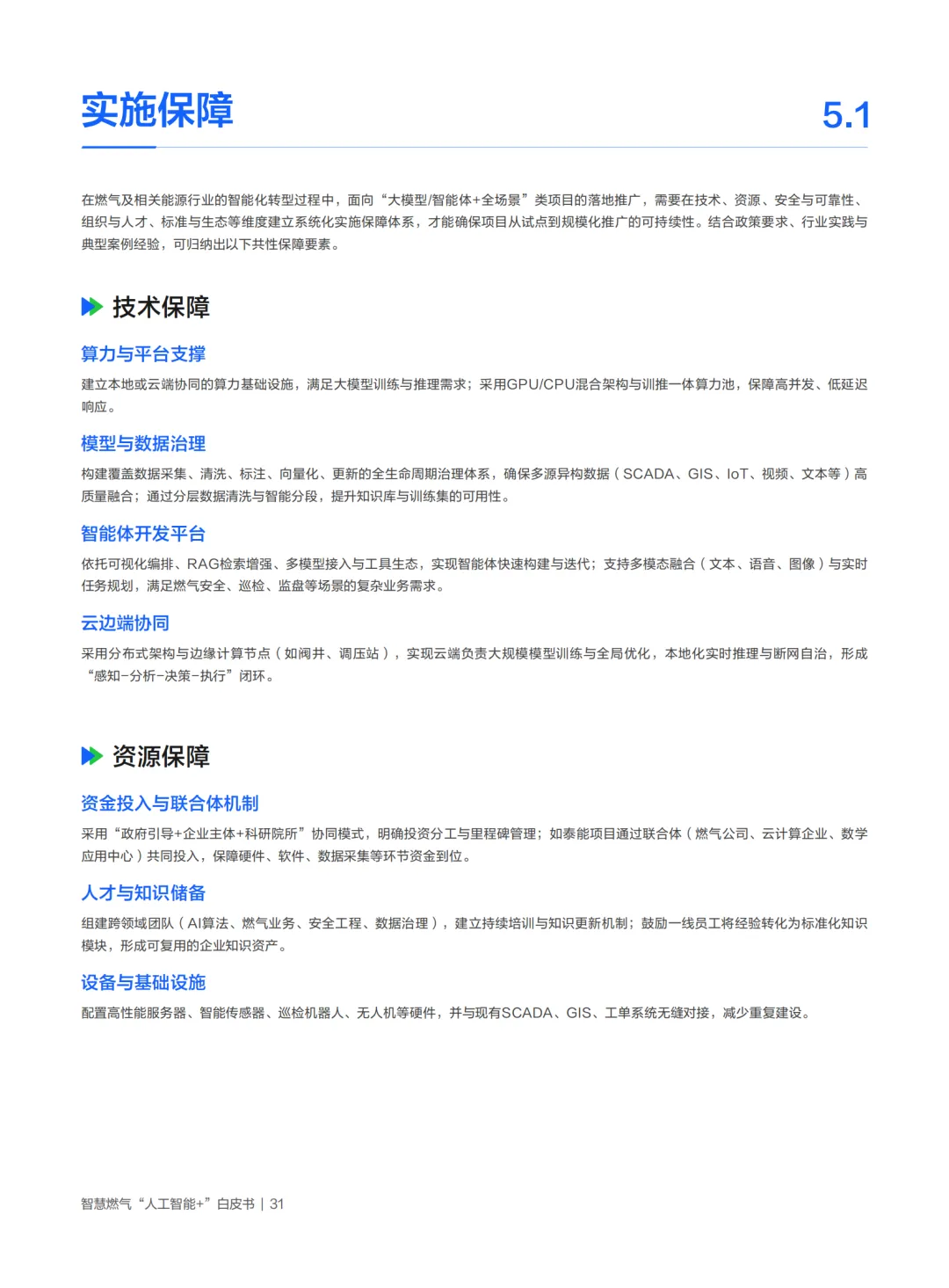 围绕“大模型/智能体+全场景”在燃气能源行业的规模化落地,构建“技术-资源-安全-组织-生态”五位一体的系统性保障体系,支撑项目从试点验证走向全面推广,实现可持续、可复制的智能化转型。